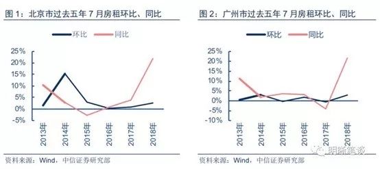 根据中信固收发布的报告,北京广州房7月房租增速均为五年高位。