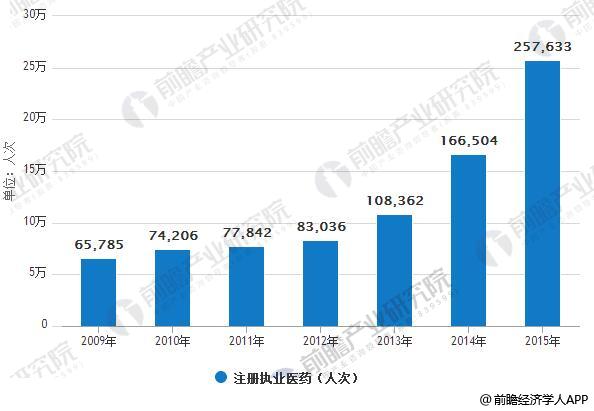 2015 年12月31日,全国注册执业药师总数已达257633人,较上年增加91129人,执业药师注册率较2014 年增加2.4PCTs,每万人口注册执业药师达1.95人,但相比世界药学联合会标准6.2 人还有较大的差距。