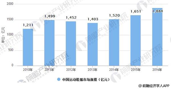 2010-2016年中国运动鞋服市场规模情况