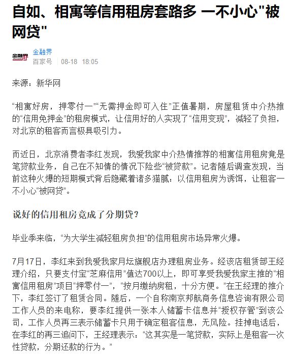 然后,中介和租客联系,号称押一付一甚至押0付一来吸引客源,只需要一点服务费就可以,通过种种诱导让你签了合同后,你突然发现,你和一家XX金融公司产生了联系,每个月的租金不是打给房东的,甚至也不是打给中介的,而是需要打给这家金融公司的,然后你的服务费,也是交给这家金融公司的。