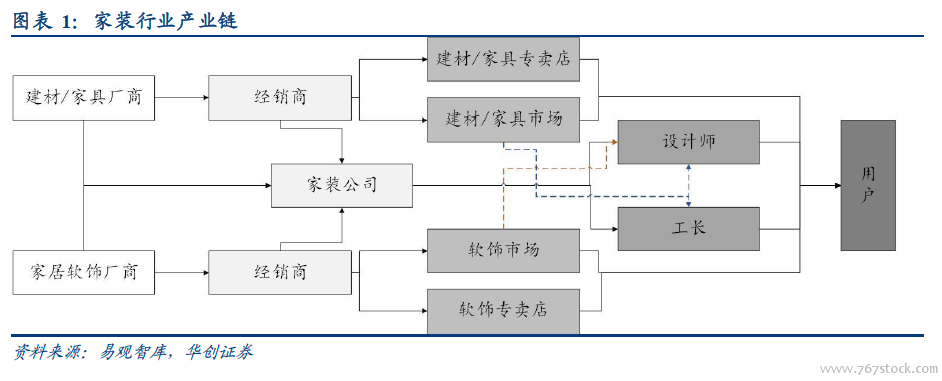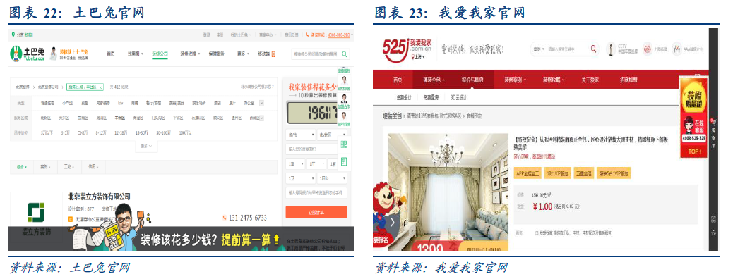 技术变革推动家装行业良性发展。前端消费者交互方面,大型家装公司已采用VR/AR 技术、互联网+BIM 设计系统,并基于客户定位给予个性化服务的LBS 服务,提供“所想即所见,所见即所得”的服务。量房方面,采用三维激光扫描测绘,能更为精确量尺,减少装配误差。施工方面,部分公司摒弃了传统的湿法作业,改为标准化装配的干法施工,效率更高,更为环保;部分厂商研发机器人来代替人力做基础工作,降低人力成本。后端监督方面,设计业主、工人、项目经理和第三方监理多方参与在线互动APP,减少投诉争议,完善监督机制。