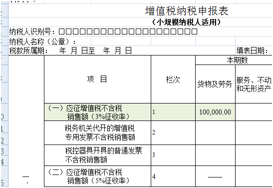 假设某企业为小规模纳税人,3月销售货物取得未开票不含税收入为10万。该企业第一季度收入应当如何申报?