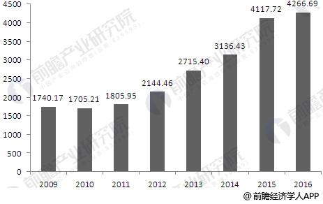2009-2016年国水务行业年度投资额走势(单位:亿元)