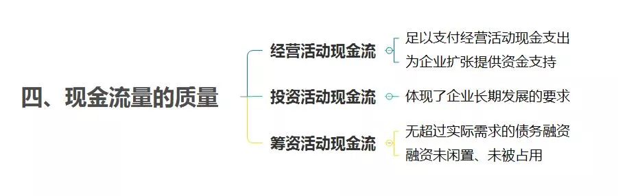 现金为王。利润有质量最后还是要体现在现金上,即企业的利润能给企业带来现金,企业的经营性现金流量足以覆盖企业的日常支出,甚至可以支撑企业投融资的需要。