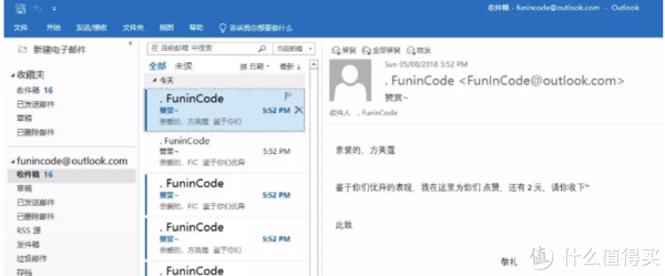 我们来验证一下刚发才的20封邮件是不是都发送成功了, 因为收件人都是我们自己FuninCode, 我去FuninCode的邮箱里面检查一下,可以看见确实20封邮件都收到了,而且内容是不同的。