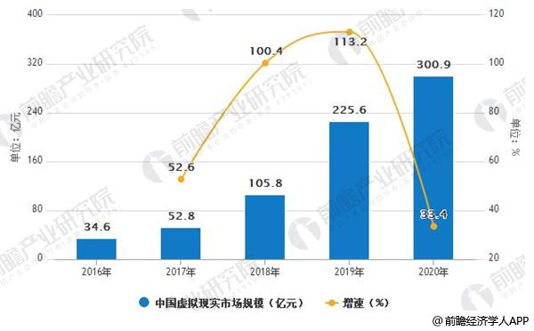 2016-2020年中国虚拟现实市场规模及增速情况