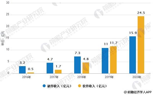2016-2020虚拟现实市场软硬件收入情况