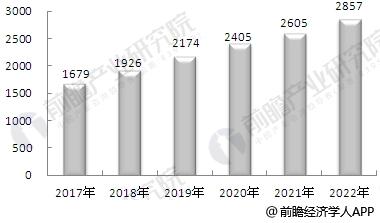 2017-2022年在线教育行业市场规模(单位:亿元)