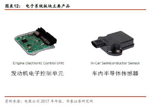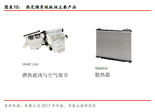 热交换系统世界龙头,致力产品差异化。公司的热交换系统的主要产品包括供热通风和空气调节相关产品,以及散热器。公司在该板块有世界领先的市场份额和生产研发能力,2017年,热交换系统板块的营业收入达14522 亿日元,同比增长7.0%,营收占比达28.4%。基于热交换系统零部件产品差异化低,易导致价格战,以及世界各国燃油经济监管趋严等两大现实因素,公司在热交换系统板块确立三大中期战略:一是加强维护客户关系和已有产品的成本优势;二是增强产品差异化,研发燃油节约型产品;三是加强研发和制造注重安全性和舒适性的产品。