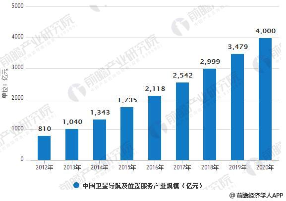 2012-2020年中国卫星导航及位置服务产业规模(亿元)