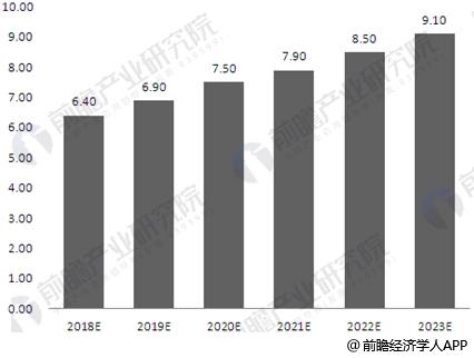 2018-2023年中国软件行业市场规模预测(单位:万亿元)
