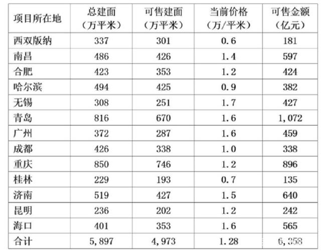 2017年融创暴富是因为鲸吞了万达的13个文旅项目,一举获得5897万平米土地储备。其中可售面积4973万平米、自持面积927万平米。