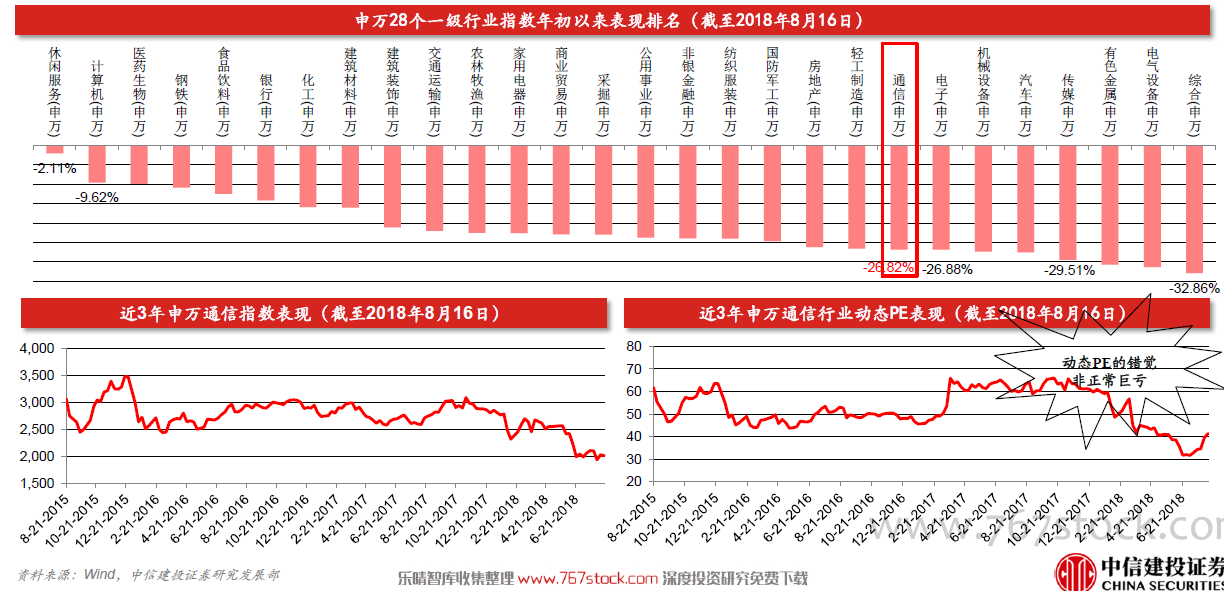 通信(申万)指数以及通信行业动态PE均处于历史相对底部位置。通信行业动态PE为41.37倍,近3年的高点为65.97倍,而考虑到行业部分公司非正常巨亏,会提高动态PE,因此实际情况来看,我们预计动态PE已经低于30倍。