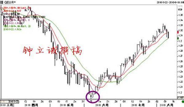 这种K线形态同股市中的形态一样,如果您想要更清楚的知道这些形态,可以进入K线组合形态进行学习!当然还可以运用一些指标进行判断,MACD指标底背离也是一种行情反转的形态。还有V形反转形态(如下图)等等!