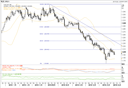 周二美国开市后黄金下跌10.5美元,再度跌破1200美元大关,贸易担忧、美国加息预期共同施压黄金。