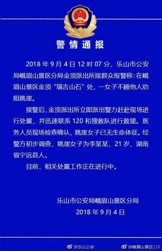 继不久前发生的华山游客跳崖事件后,峨眉山景区也在昨日发生跳崖轻生事件。