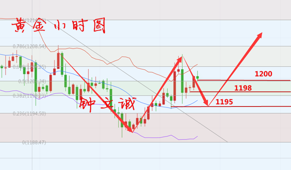 4小时,昨日黄金突破布林中轨向上发散,在触及上轨一线后承压回落,测试1196一线得以支撑反弹,K线连阳形态运行在中轨上方,Ma均线多头排列,macd金叉运行,快线穿越零轴向上,4小时黄金震荡偏强,上方关注高点1206和1208区域阻力压制,小时线,黄金冲高回落测试Ma60均线区域支撑反弹,今天开盘后价格小幅拉升,K线连阳形态,Ma5和Ma10形成金叉,macd死叉缩量并K线背离,小时线短期有一定的反弹趋势,短线操作建议逢低买入为主