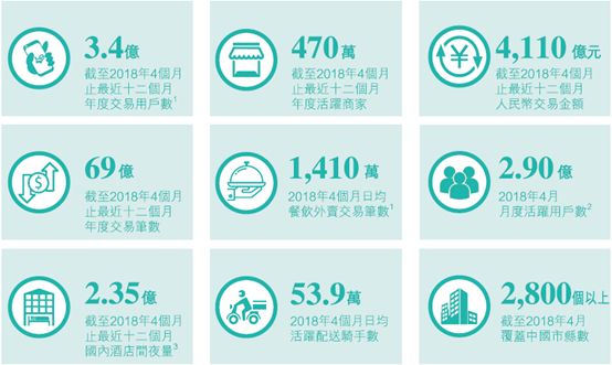 经历了“千团大战”的洗礼,熬过了数次“危急时刻”,而今的美团点评,早已超越了昔日单纯的外卖业务,围绕着吃喝玩乐的消费场景打造自身商业生态,形成了集餐饮、酒店、旅行、出行、大零售为一体的多元化业务板块。从其披露的数据看,最近12个月(截至2018年4月30日),人民币交易金额达4110亿元,拥有3.4亿年度交易用户数,交易笔数69亿,年度活跃商家470万……这些都证实了美团已是国内不折不扣的互联网巨头之一。