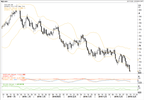 近期饱受新兴市场货币集体遭爆击影响而跟随下跌的澳元,继续其最弱的表现,上周五继续创年内新低到达0.71的水平。周五的时候美国8月非农就业人数增20.1万,预期19.1万,前值15.7万。美国8月失业率3.9%,预期3.8%,前值3.9%;美国8月平均每小时工资同比升2.9%,预期 2.7%,前值 2.7%。美国非农数据的强劲,无疑奠定了年内美联储继续加息的坚实基础,反衬澳联储的按兵不动,息差扩大的影响,继续施压澳元,因此澳元真是有点积重难返的感觉。上周依然多次建议空头澳元,如果有投资者进了空的头寸可减仓持有,观察一旦0.71也失去抵抗,则相仿将会考验0.70大关。
