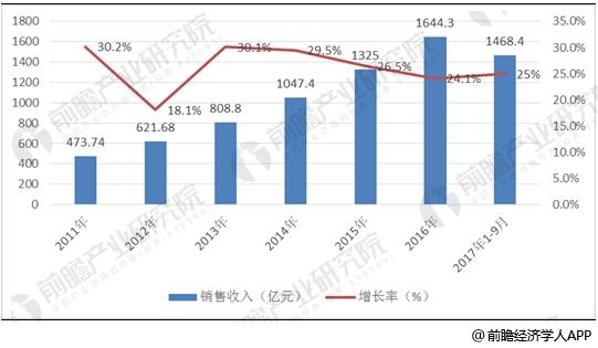根据前瞻产业研究院发布的《集成电路行业市场需求预测与投资战略规划分析报告》统计,集成电路设计业销售收入从2011年的473.74亿元增长到2016年的1644.3亿元,年复合增长率为28.58%,占全球集成电路设计业的比重提升至27.82%,增速较为可观。