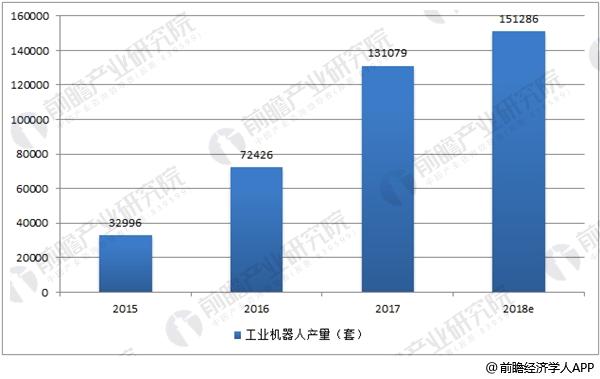 目前,中国机器人产业发展正呈现加快向中高端转型的新特点。据前瞻产业研究院发布的《工业机器人行业产销需求预测与转型升级分析报告》数据显示, 2017全年中国工业机器人产量达到131079套,预计2018年工业机器人产量将达到151286套。连续五年成为全球第一大应用市场;但资本和创业者正逐渐回归理性,企业注册增长速度首次下滑。与此同时,目前产业发展正经历从数量扩展向高质量发展的攻坚阶段,一揽子行业标准和引导规范也正在加快酝酿推出。