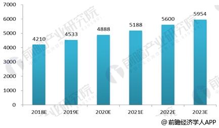 2018-2023年珠宝首饰及有关物品制造行业市场规模预测(单位:亿元)