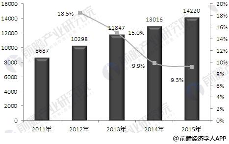 创新创造能力的提高离不开国家在基础设施以及创新过程中的不断投入。从我国研究与试验发展经费支出情况来看,2011年,我国研究与试验发展经费支出为8687亿元,到2015年达到了14220亿元,年均复合增长率为13.11%。