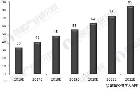 2016-2022年荧光显微镜行业市场容量预测(单位:亿元)