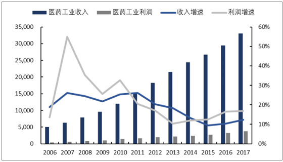医药行业自2014年开始进入医改深水区,伴随着招标降价等因素,医药行业进入调整时期,经历2015年的阵痛后,从2016年开始医药行业逐渐确立了底部,业绩开始稳中有升。通过工信部的医药工业数据可以看到,医药行业整体在政策引导、大健康产业发展、人口结构调整等多重作用下,逐渐迎来产业结构调整后新的发展周期。