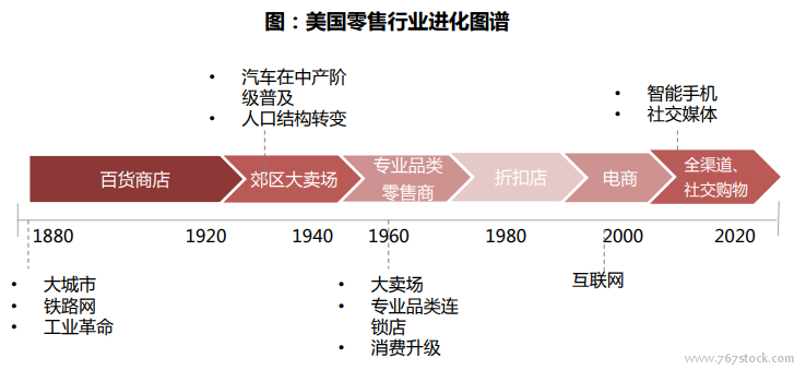 美国线下百货市场已经饱和处于供大于求的状态。美国线下人均零售面积约为法国、日本、英国人均零售面积的5倍。美国线下零售的营业面积高于澳大利亚、英国、德国和墨西哥线下零售面积的总和,线下零售严重过剩。