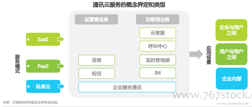 公有云与移动互联网的发展促使企业通信服务云化转型。企业通信服务早期以短信、语音和呼叫中心为主,采用本地部署的模式提供给传统的大型企业。随着阿里云、腾讯云等巨头公司相继进入公有云IaaS市场,企业客户对云服务的认知程度逐渐提高,在通讯垂直领域中不断出现新兴的云服务创业公司。移动互联网时代,多样化的应用场景让互联网公司和中小企业对通讯服务的需求也变得越来越强烈,无论大中小微企业都能从低成本高效率的云服务中受益。通讯云服务在将市场边界拓展至各类型企业的同时,产品形态也由基于运营商的业务向IM、实时音视频和云客服等延伸。传统通信厂商和互联网巨头纷纷利用自身优势切入这一市场,通讯云服务对传统通讯服务的替代作用日益明显。
