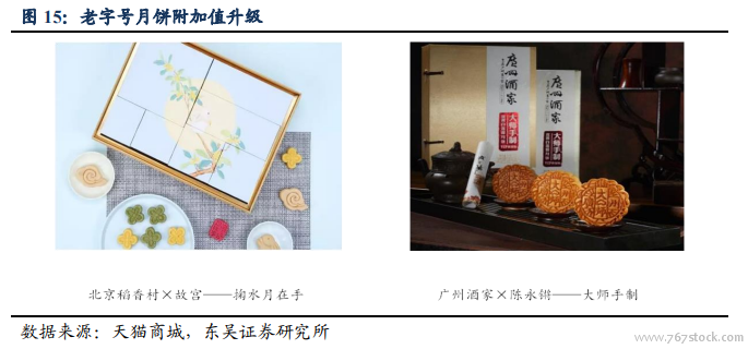 月饼消费回归本质,普通包装销售提速。豪华礼盒不再受热捧。根据中商产业研究院统计,散装月饼销售同比上升幅度较大,在 10%-30%之间。京东的统计数据也显示,17 年月饼礼盒装销量同比下降了 30%而普通纸质包装上升了 20%。根据广州酒家的销售数据,其礼盒销售量占比逐年下降至 16 年 16%。