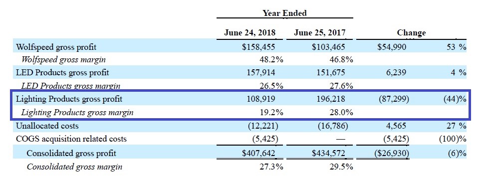 Cree的照明產品相對維持獲利,惟毛利率下滑