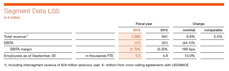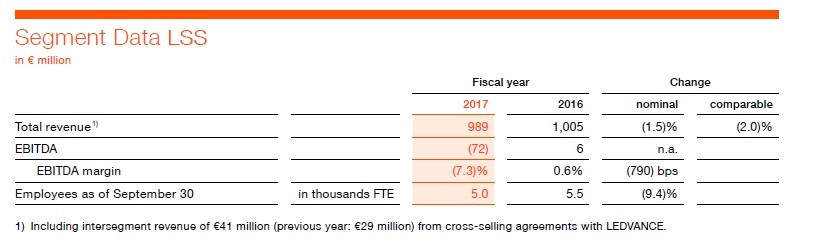 歐司朗此次欲出售的燈具事業隸屬於財報中照明解決方案與系統之下,而自財年2014年至2017年以來,這個事業皆未營利,2017年照明解決方案與系統事業的營收為9.89億歐元,但獲利卻是赤字7200萬歐元,顯示燈具事業恐拖累整間公司的獲利表現。直至財年2018年第三季,照明解決方案與系統事業仍為赤字。