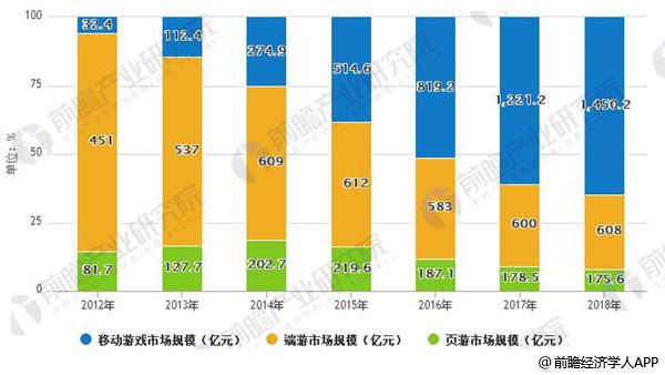 2012-2018年中国端游、页游、手游市场规模变化趋势