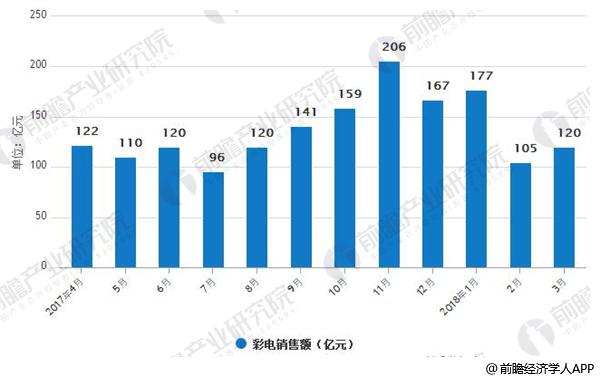 2017-2018年3月份彩电销售额情况