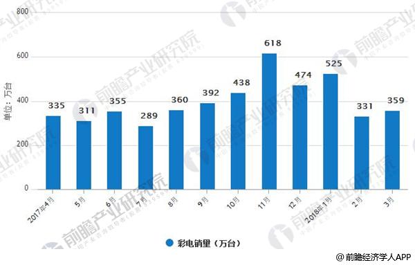 2017-2018年3月份彩电销量情况