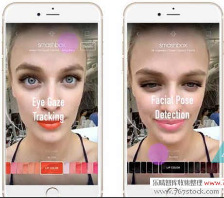 Smashbox & ModiFace。Smashbox与ModiFace合作开发的新应用,不仅只局限于虚拟试用Smashbox彩妆;这项新应用程序还可跟踪眼球运动,观察消费者最感兴趣的产品,从而让品牌提示消费者购买或给予消费者更多相关信息。