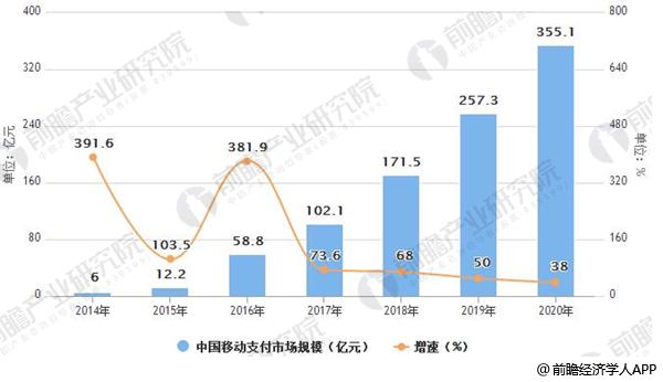 据前瞻产业研究院发布的《移动支付行业发展趋势与投资决策分析报告》数据显示,2016年中国第三方移动支付交易规模达到58.8万亿元,同比增长率超300%,达381.9%。随着智能手机的普及和二维码支付市场的爆发,消费者从PC端向移动端的迁移速度加快,预计2018年中国第三方移动支1付交易规模将超150万亿元,达到171.5万亿元,增长率为68.0%。