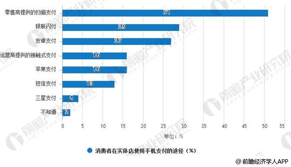 零售商提供的扫描支付以51%的用户使用比例占据手机支付途径的首位,这与微信和支付宝宠大的用户基数有着密不可分的关联,银联闪付仅次于零售商支付方式 ,以29%的居于第二,安卓支付位居第三。