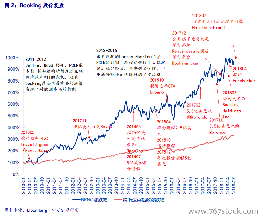 Booking:专注机酒,外延扩张打开欧洲市场。Booking Holding(原 Priceline,以下简称 Booking):客户反向定价,在线旅游C2B模式开创者。Booking创立于 1998年,1999年纳斯达克上市,旗下包括 booking.com、priceline.com、Kayak 和 Open Table 等六个品牌,向全球用户提供酒店、机票、租车、旅游打包产品等在线预订服务。Booking 是在线旅游 C2B 商业模式开创者,它为买卖双方提供一个信息平台,以便交易,同时提取一定佣金。