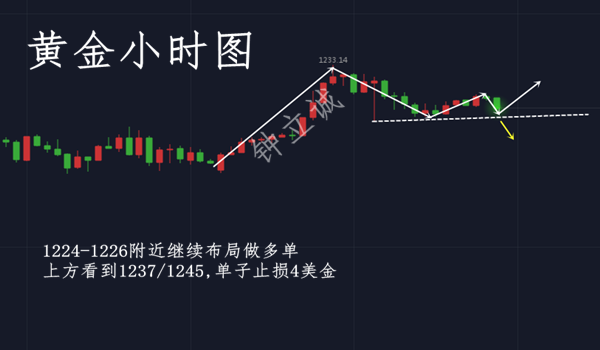 1、1224-1226附近继续布局做多单,上方看到1237/1245,单子止损4美金;