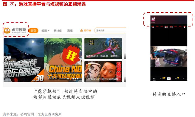 2017年崛起的短视频,对游戏直播平台的冲击有限,更倾向于互补而非完全替代。我们认为其主要原因在于,从用户的核心诉求来看,大部分观众观看游戏直播的目的是寻求竞技刺激感与游戏的代入感,或者通过直播学习游戏技巧,改善自己的游戏技能。短视频受限于其时长,难以满足观众的上述需求。同时,短视频和游戏直播平台在近几年都属于新兴事物,目前已经形成了有效的互补关系,例如虎牙平台上已经有了专门的视频板块,抖音上也上线了直播业务。
