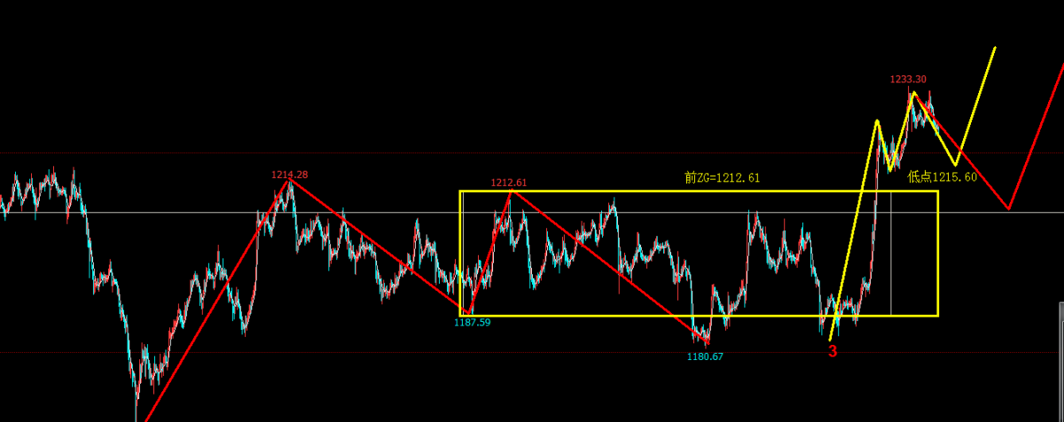 第一路径:如图黄色低点1215.6不破位起涨.