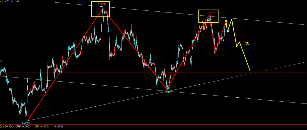 如下图所示,如果向上不能突破1.3257,再次向下回调概率高,向下关注30分钟中枢低点1.3139是否跌破,跌破市场形成3卖是空单的买点