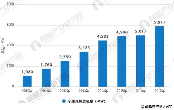 我国光热发电处于起步阶段,截至2016年底全国装机容量为28.3MW,占世界全部光热发电装机容量的0.56%,占比较低。
