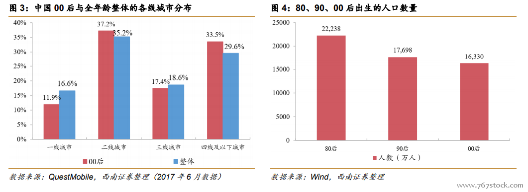 除了更有钱,00 后消费水平也远高于 90 后。根据《从“90 后”到“00 后”:中国少年儿童发展状况调查报告(2005-2015)》的数据,90 后(2005 年)每周支出 10 元以下的比例为 65.9%,而 00 后(2015 年)的这一比例为 40.4%,降低了 25.5 个百分点。在高消费水平中,23.1%的 00 后每周消费 50 元以上,而同一时段仅 4.8%的 90 后能达到这个消费水平。因此,00 后不仅更有钱,还更能花钱。