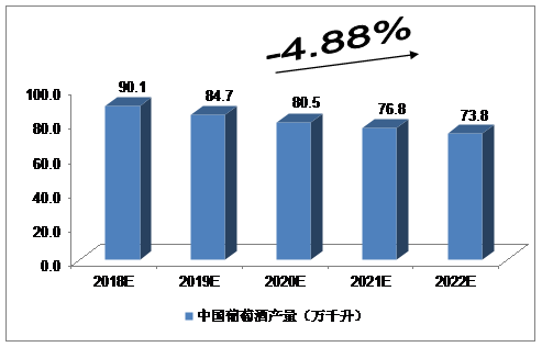 2018-2022年中国葡萄酒产量预测