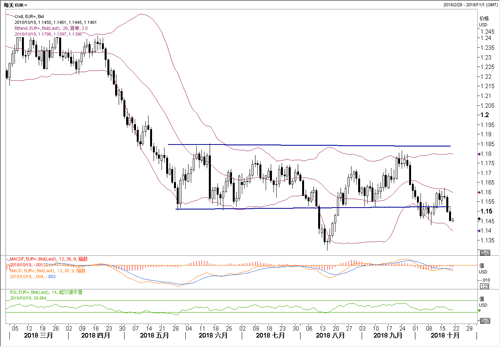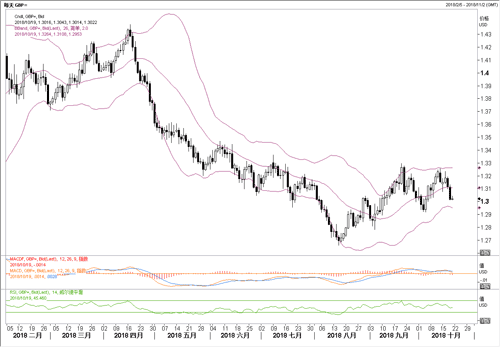 美国股市周四大幅下挫,10月份本已大幅下挫的股市雪上加霜。道琼斯工业股票平均价格指数下跌327.23点,至25379.45点。标准普尔500指数下跌1.4%,报2768.78点。纳指收低2.1%,报7485.14点。股市的继续大幅下挫,推动美元的避险买盘,美元指数得以继续攀升,而欧元则承压下行,触及1.1449近一个月的低点。昨日日间欧元曾试图反弹 ,但在1.1530处遇阻后转头下行。4小时图显示,汇价仍在下滑的20和100均线约1.1560水平下方发展。欧元/美元已经在位于1.1624的斐波那契阻力位受阻,短期进一步回撤。初步支撑1.1508已经被跌破,或跌至1.1411的78.6%回撤位,有可能重新测试1.1300的近期低点。若1.16或1.1550附近有空头欧元的头寸可考虑继续持有,赢利目标1.14附近,止损下移到1.15。