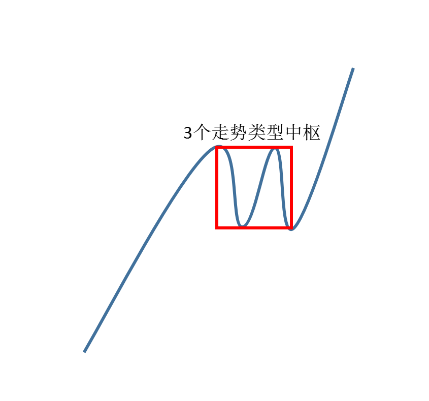3:连续次级级别:要求必须前三个走势类型有重叠,如图下图所示标准的中枢